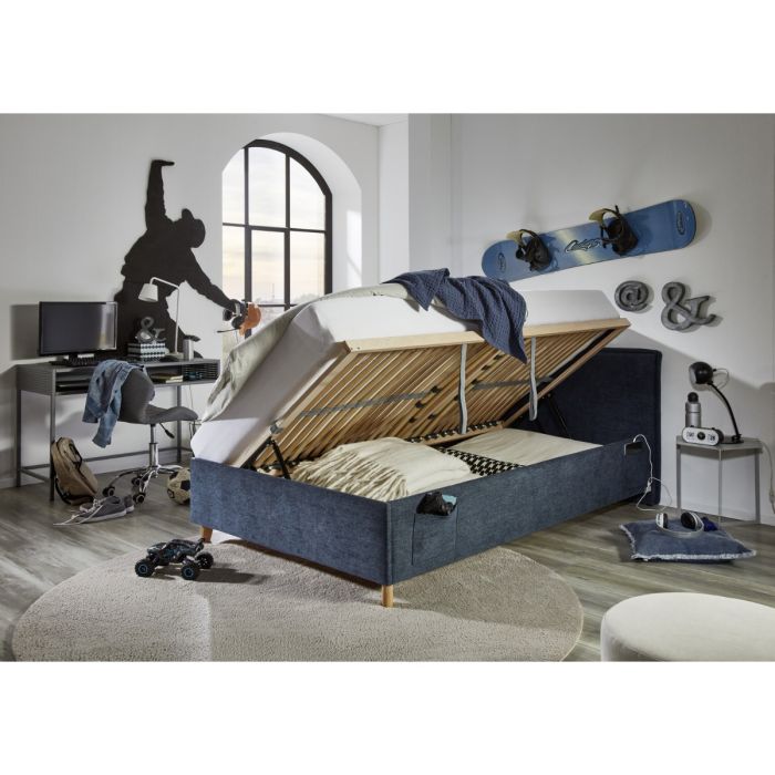 Gestoffeerd Opbergbed Fun 140 x 200 Donker Blauw