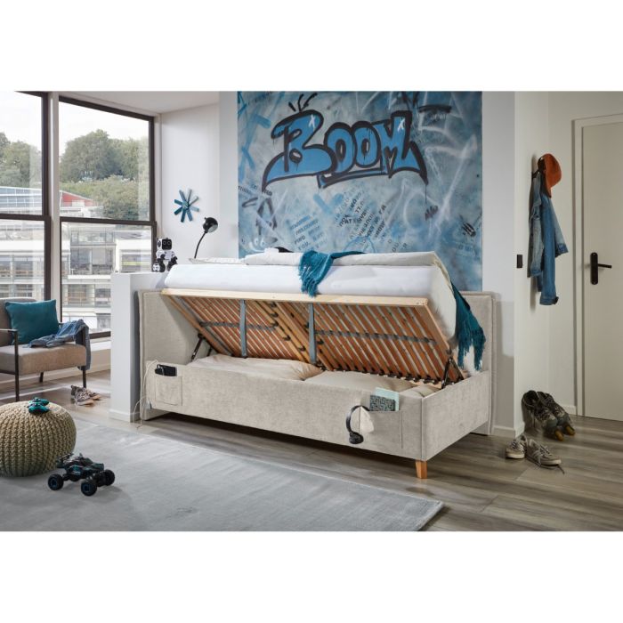 Gestoffeerd Opbergbed Fun 90 x 200 met rugleuning Beige